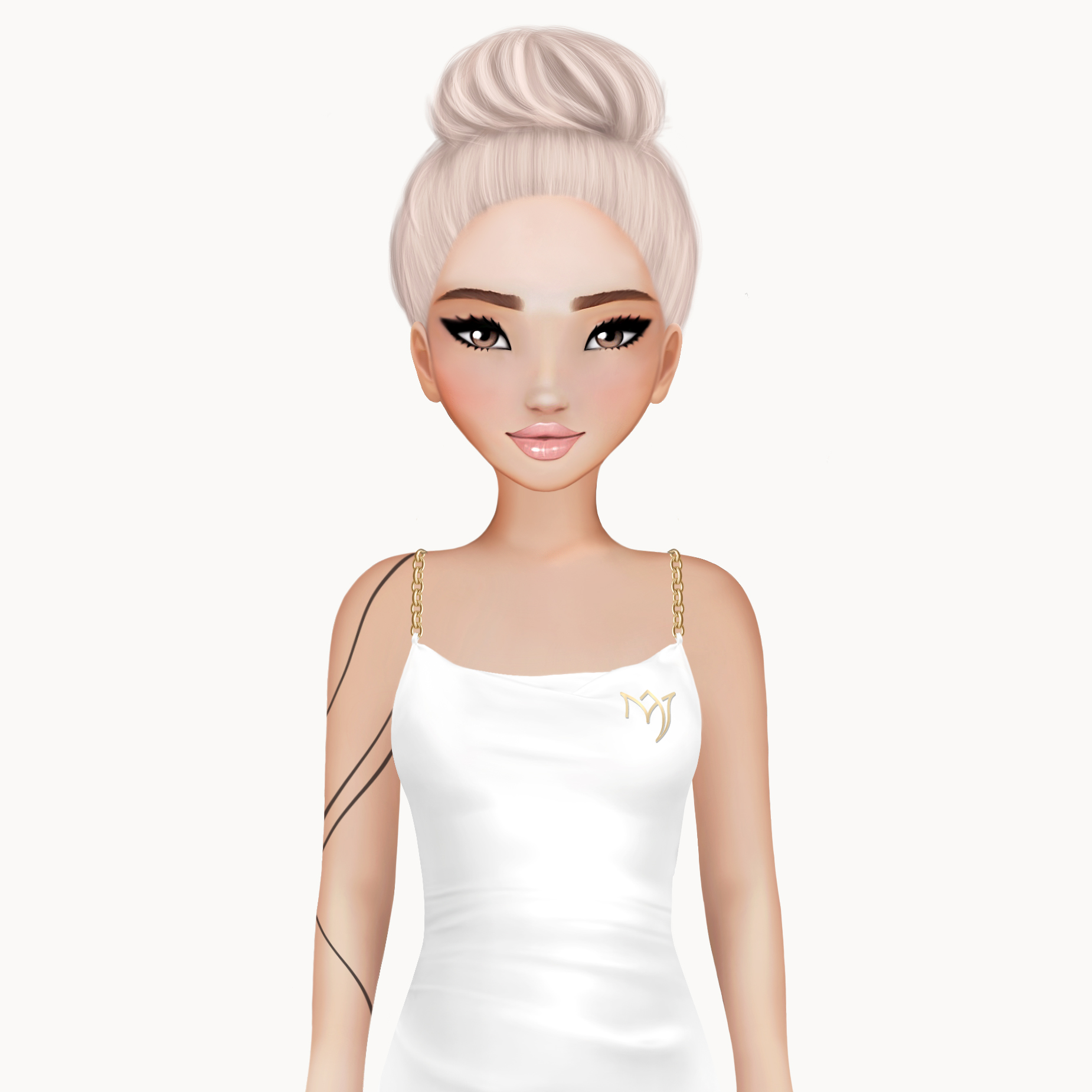 Crafted from luxurious, shimmering satin, with a signature cowl neckline and gold chain straps, this digital IT-piece blends timeless elegance with peak on-chain attitude.